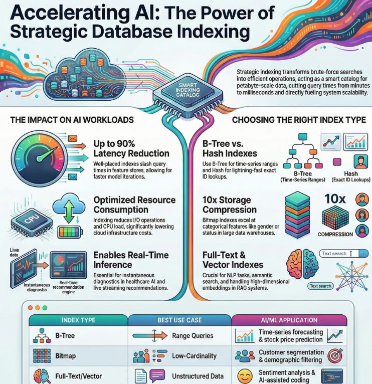 Picture this: You’re building an AI recommendation system for an e-commerce platform, sifting through millions of user interactions to suggest the perfect product. Without proper indexing, your database is like a massive library with no catalog every search means flipping through every book, page by page. Indexing acts as that smart catalog, pointing your queries straight to the right shelves, dramatically reducing the time and computational effort needed. In the realm of AI and ML, where datasets are exploding in size and complexity think petabytes of sensor data for autonomous vehicles or vast corpora for natural language processing effective indexing isn’t just a nice-to-have; it’s essential for training models faster, running real-time inferences, and keeping cloud costs in check. I’ve seen teams cut query times from minutes to milliseconds just by rethinking their indexes, turning sluggish apps into responsive powerhouses. For instance, in healthcare AI, where querying patient records for predictive analytics must be instantaneous to aid real-time diagnostics, poor indexing could mean delayed insights that impact lives. On the flip side, companies like Google leverage sophisticated indexing in their search algorithms to handle trillions of queries, blending ML with database smarts for lightning-fast results.