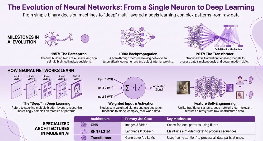 The Story of Neural Networks: From a Single Neuron to Billion-Parameter Models