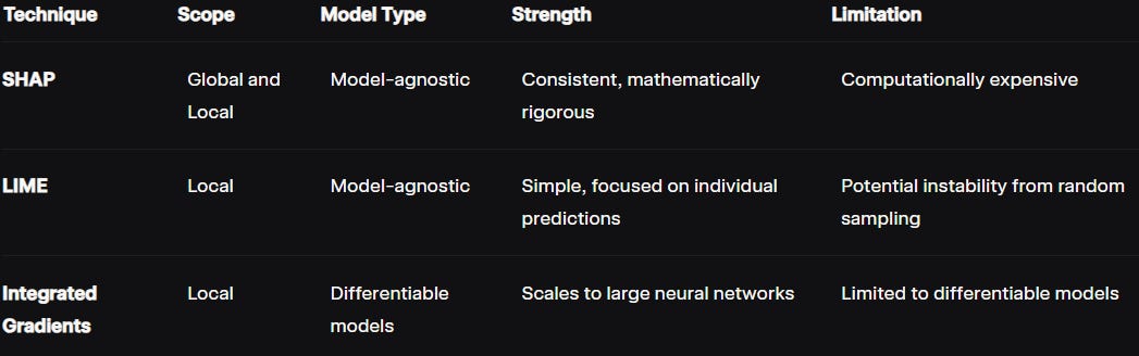 Let’s explore the three key techniques featured in this edition: SHAP, LIME, and Integrated Gradients. Each offers unique strengths in unraveling the complexities of ML models.